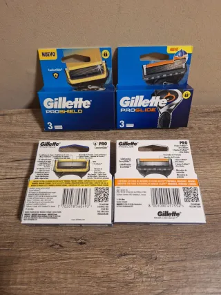 Tres paquetes de 3 repuestos para afeitadora Gillette Proshield. Tengo mas modelos en mi perfil - Cada paquete contiene 3 hojas. - Modelo Proshield con ComfortGlide.