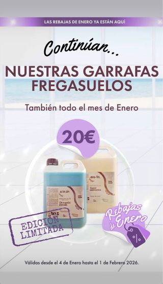 Garrafas de fregasuelos, una edición limitada. 5 L - 20€ por unidad . - Válidas desde el 4 de Enero hasta el 1 de Febrero 2026.