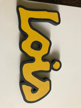 Letra corpórea decorativa con el nombre Lois, color amarillo y negro medidas 18cm de ancho y 38.5cm de largo. - Diseño tridimensional. - Color amarillo con contorno negro.