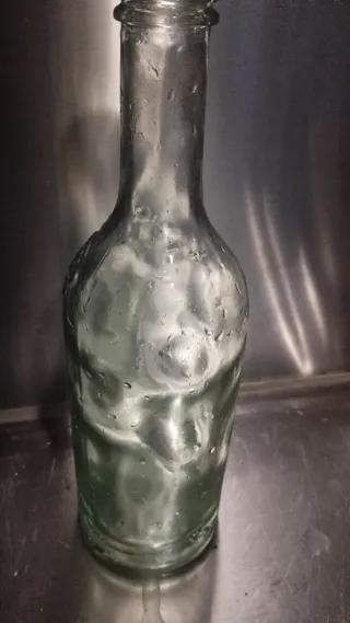 Botella de vidrio antigua con el grabado AGUA CARABAÑA. Cristal efecto olas pocas unidades - Diseño clásico. - Ideal para coleccionistas.