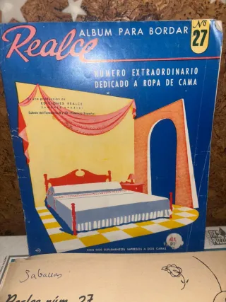 Revista Realce número 27, un álbum extraordinario dedicado a la ropa de cama. - Portada ilustrada con un dormitorio. - Incluye Hoja de Dibujos N.º 1 y 3 - Depósito Legal V 822-1973.