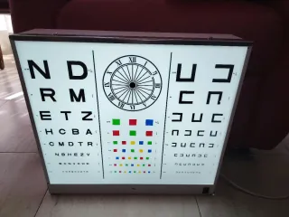 Optotipo de pared para exámenes de la vista. Incluye diferentes tipos de letras y figuras. - Diseño de pared. - Incluye optotipo de letras y figuras. - Panel iluminado.