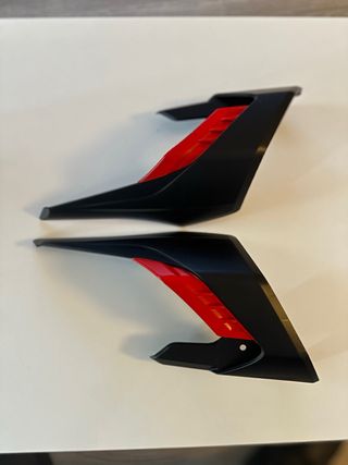 Aletas decorativas para las tomas de aire de la Honda CB650R. Añaden un toque deportivo y distintivo a la moto. - Diseño en negro mate con detalles en rojo. - Fabricadas en plástico de alta calidad.