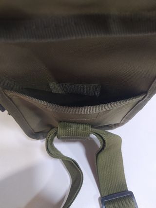 Bolso de pierna y cintura de estilo táctico, ideal para actividades al aire libre o uso diario. - Con velcro grande. - Color verde militar. - Múltiples compartimentos y bolsillos. - Correa ajustable para la cintura y la pierna. - Cierre con hebilla de plástico. - Nunca usado. - Ideal también para ir en moto.