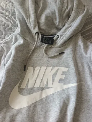 Sudadera con capucha de color gris y logo grande de Nike en blanco. - Talla XS. - Fabricada en China.