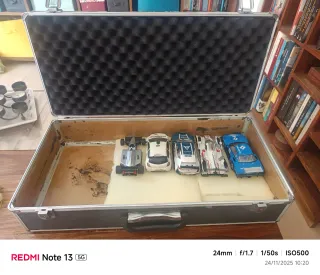Conjunto de coches de slot a escala 1/32. Maletín incluido - Incluye varios modelos de coches de carreras. - Diseños detallados y variados.Envios por wallapop o correos certificado.Si tienes dudas pregunta sin compromiso.Se puede incluir algún recanvio