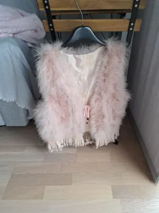 Este chaleco de pelo añade un toque de estilo y textura a cualquier atuendo. TALLA UNICA - Diseño con flecos en el bajo. - Cierre con botones. - Forro interior.