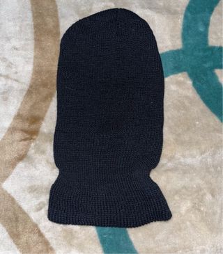 Pasamontañas de punto negro. - Diseño de tres agujeros para ojos y boca. - Cubre toda la cabeza y el cuello.