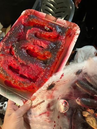Set de decoración de Halloween con temática sangrienta y de gusanos. Perfecto para crear un ambiente espeluznante. - Mando fotos de todos los muñecos por privada hay muchos y la aplicación no me da opción a ponerlos todos. - Bandeja con aspecto de intestinos y sangre falsa. - Incluye gusanos y ojos falsos. - Telarañas artificiales con cucarachas. - Mas de 50 muñecos y decoraciones de un pasaje de terror, manos , pies , muñecos grandes, pequeños todo casero pero muy bien hechos., puedo pasar más fotos por WhatsApp y vídeo.