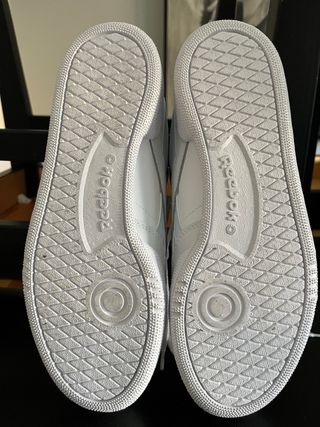 Zapatillas deportivas Reebok de color blanco. Suela de goma con diseño. - Logo de Reebok en la suela. - Diseño de rombos en la suela.