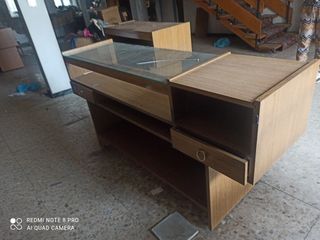 Mostrador tienda de diseño con muy poco uso. Medidas 1'50 largo x 0'92 alto x 0'50 cm fondo. En perfecto estado (le falta sólamente un cristal de puerta interna).