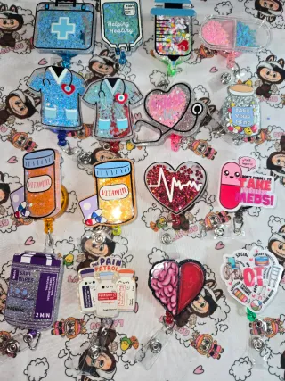 Precio unidad carretes para credenciales con divertidos diseños temáticos de medicina y enfermería. Perfectos para profesionales de la salud. - Diseño de botiquín de primeros auxilios con cruz azul. - Diseño de bolsa de suero con texto Helping Healing. - Diseño de bolsa de suero con confeti. - Diseño de cápsula de pastilla dividida. - Diseño de uniforme de médico/enfermero azul brillante. - Diseño de uniforme de médico/enfermero con detalles rojos. - Diseño de estetoscopio con corazón brillante. - Diseño de frasco de pastillas Take Your Meds. - Diseño de frasco de vitaminas naranja. - Diseño de frasco de vitaminas con pastillas.