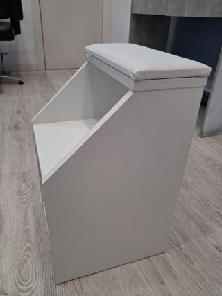 Mueble auxiliar de diseño moderno, ideal para espacios de estética o peluquería. - Acabado en color blanco. - Superficie superior acolchada.