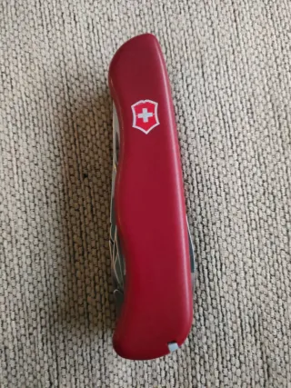 Navaja multiusos Victorinox clásica con mango rojo. - Hoja principal de acero inoxidable. - Sacacorchos integrado. - Abrebotellas. - Destornillador. En buenas condiciones con algunas marcas leves de uso sobre todo en la hoja principal. Se incluye en el precio herramita de bushcraft conango de madera de cocobolo. Más fotos por privado