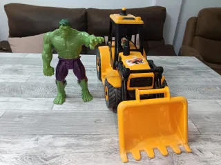 Se vende conjunto de juguete. - Retroexcavadora de color amarillo y negro. - Muñeco articulado del personaje Hulk.