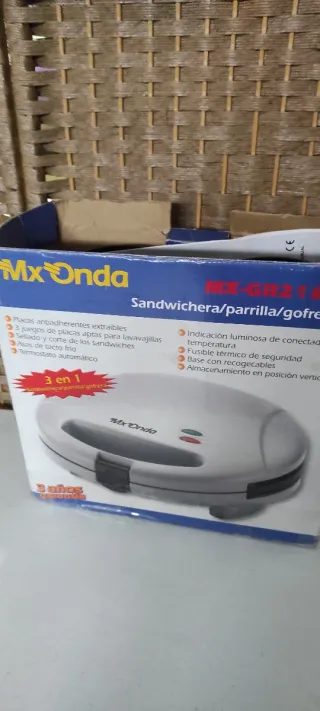 Sandwichera de la marca Mx Onda en color plateado. Cuenta con luces indicadoras de encendido y listo Tiene la plaquita de cerrar hermetica que no encaja pero hace los sandwichs perfectos, cn difrrentes dibujos segun las placas que se decida poner. Ver indicaciones en caja, tiene el lbro de instrucciones - Diseño compacto. - Fácil de usar.