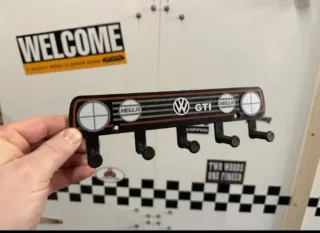 Colgador de llaves con diseño de la parrilla frontal de un Volkswagen GTI Mk2. Es un artículo decorativo y funcional para organizar tus llaves. - Diseño de la parrilla delantera del VW GTI Mk2. - Fabricado en material resistente. - 5 ganchos para colgar llaves.