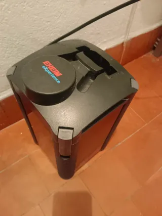 Filtro externo Eheim Experience 2424 020 para acuarios. Diseñado para mantener el agua cristalina y saludable de acuarios de hasta 200l aproximadamente, con su caudal de 700l. Está en muy buen estado y perfecto funcionamiento. Se vende con sus esponjas filtrantes y con los tubos de entrada y salida. Se pueden mandar más fotos si es necesario. Se vende por finalizar con el hobby de la acuariofilia. Se entrega en mano en Navalmoral de la Mata y Cáceres capital y alrededores. También se realiza envío. - Modelo: Experience 2424 020 - Marca: Eheim. - Color: Negro. - Medidas: 32cm x 18cm x 18cm