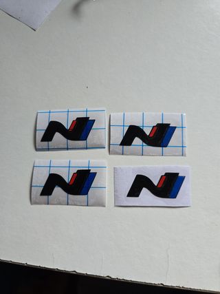 Pegatinas de vinilo con el logo de Hyundai N. Son dos unidades, nuevas y sin usar. Ideales para personalizar tu coche. - Diseño elegante y deportivo. - Color negro, rojo y azul. - Fáciles de aplicar.