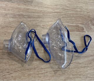 ✅ NUEVO A ESTRENAR -Set de dos Máscaras Transparentes para Nebulizador, con cintas elásticas azules. - Material: Plástico transparente. - Cintas: Elásticas de color azul.