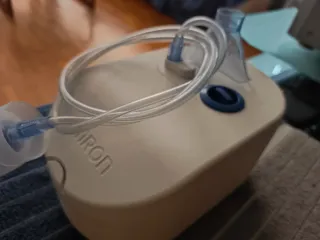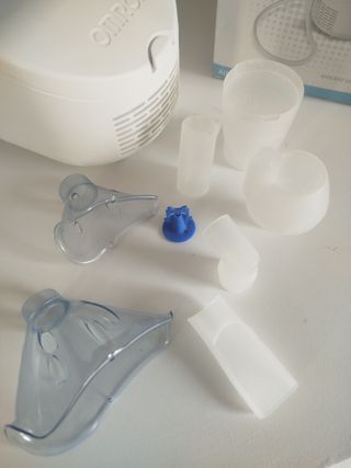 Compresor nebulizador Omron NE-C28P. - Nuevo vale más de 100€ - Usado para nebulizar un cuarto solo una semana, nunca usada la mascarilla ni el tubo directamente. - Diseño compacto y ligero. - Incluye todos los accesorios necesarios para su uso: boquilla nebulizadora, tubo, mascarilla y bolsa de transporte.