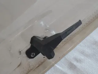 Mástil con accesorio para eliminar holguras. - Pieza de color rojo. - Eje negro.