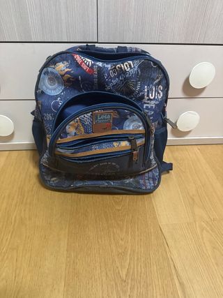 Mochila escolar con un diseño llamativo de la marca Lois Jeans. - Estampado azul con motivos de Lois Jeans y 1962. - Compartimento principal con cierre de cremallera. - Bolsillo frontal adicional con cremallera.