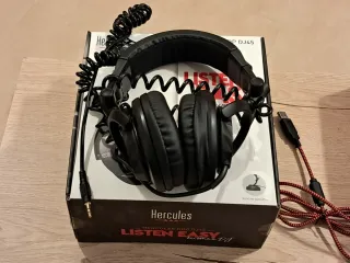 Controladora DJ Hercules Impulse 200 junto con unos cascos. - Controladora DJ Hercules Impulse 200. - Cascos de DJ.