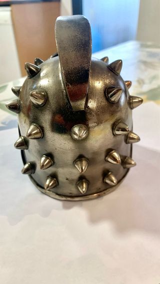 Réplica de casco de gladiador. - Diseño metálico detallado. - Inspirado en la armadura de los guerreros romanos.