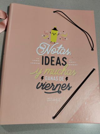 Carpeta de la marca Mr. Wonderful con un diseño alegre y una bolsa a juego. - Diseño con texto Notas, Ideas y muchas ganas de viernes. - Cierre elástico. - Incluye bolsa a juego.