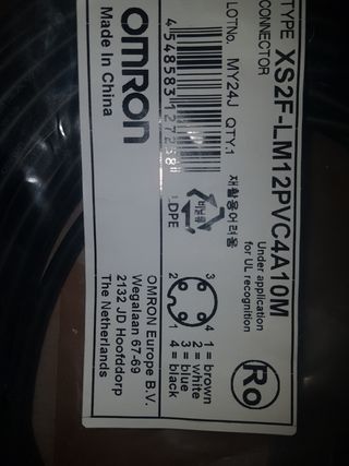Cable OMRON XS2F-LM12PVC4A10M para sensores y actuadores. Longitud 10 metros. Utilizado en automatización industrial, maquinaria y líneas transportadoras. Marca OMRON, calidad y fiabilidad industrial japonesa.
