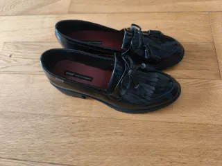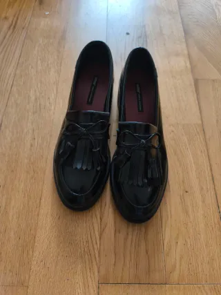 Zapatos negros charol con flecos Talla 40