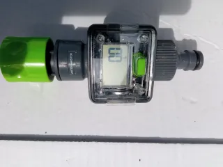 Temporizador digital para riego de jardín. - Conexión estándar para grifos. - Pantalla digital. - Botón de activación verde.