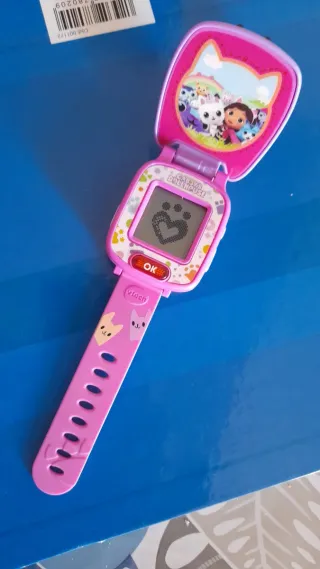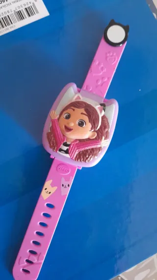 Reloj infantil de VTech con diseño de Gabby's Dollhouse. - Correa de color morado. - Divertidos dibujos de gatitos en la correa. - Detalle de orejas de gato en la parte superior.