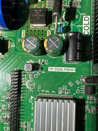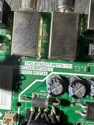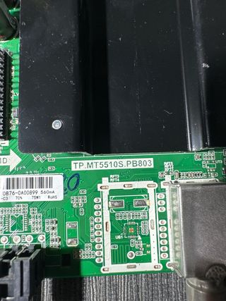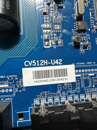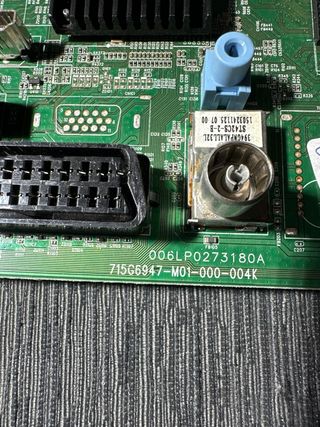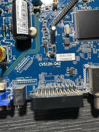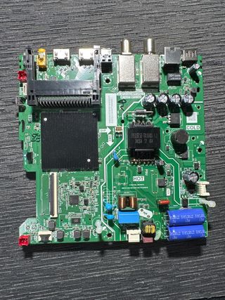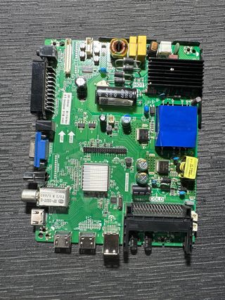 Sacada de televisor TD SYSTEMS K32DLM6H con pantalla rota - Modelo: TP 5505 PB816 - Componentes: Transformador, condensadores, chip principal, conectores. - Conectores: VGA, USB, HDMI, SCART.