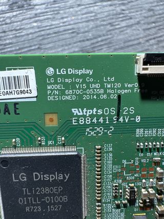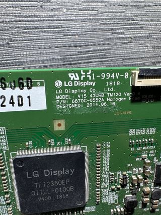 Sacada de televisor TOSHIBA 43U6863DG con pantalla rota - Modelo: TL12380EP - Código: 01TLL-0100B - Versión: V400 1818 - Fabricante: LG Display Co., Ltd. - Fecha de diseño: 2014.06.16