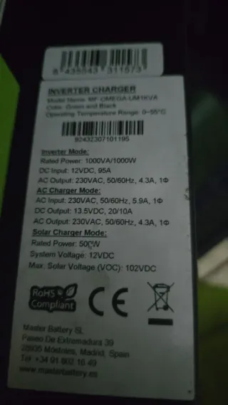 Equipo de energía solar, ideal para autocaravanas y furgonetas camper. - Conversor de corriente. - Batería de litio. - Panel de control con pantalla LCD. - Indicadores LED de estado (AC, INV, CHG, FAULT). - Botón de encendido/apagado. Garantía hasta junio 2026