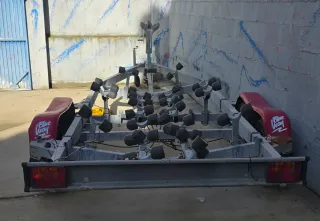 Remolque de varada para embarcaciones de la marca Blue Way. Ideal para el transporte y varada de tu barco. Hasta 10 metros - Estructura robusta de metal. - Múltiples rodillos para soporte. - Guardabarros rojos. - Luces traseras. Precio negociable.