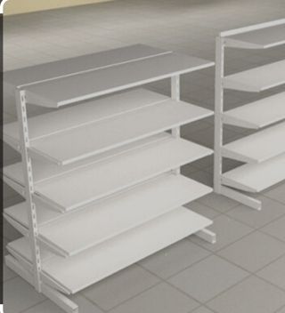 Por cierre de local se venden 6 metros de estantería metálica lineal y 4 metros de estantería metalica central. * Estantería lineal de 5 divisiones por 600€ * Estantería central de 4 divisiones por 450€ Precio negociable, solo interesados, no se hace envío.