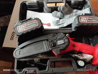 Mini sierra eléctrica inalámbrica con dos baterías de litio de 21V. engrase para mejorar el corte Incluye guantes de protección.total mente nueva - Batería de Ion-Litio de 21V. - Diseño compacto y ligero. - Incluye manual de usuario.