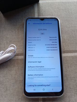 50 euros esta semana Se vende telefono de marca blanca....estetica de una conocida marca pero no es. Protector de pantalla y funda puesta y los accesorios que estan en la foto. Esta sin usar.