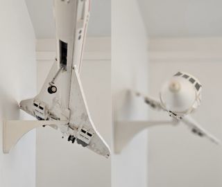 Soporte de pared para el transbordador espacial de LEGO, 2417 Piezas. Diseñado para exhibir tu creación de forma segura y elegante. - Construcción robusta de LEGO. - Incluye soporte 3d para el transbordador espacial y el avión portador. - Ideal para coleccionistas y aficionados al espacio. - Impreso en 3d color negro o blanco listo para montar en la pared.
