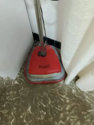Enceradora pulidora de suelos en color rojo y gris. - Base triangular. - Mango extensible.