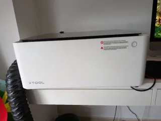 Cortadora laser xtool M1 con sistema de aire instalado. Corta y graba materiales como madera. Ideal para makers.