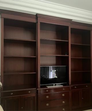 Mueble librería de madera de caoba, ideal para organizar tus libros y objetos. - Fabricado en madera de caoba. - Diseño clásico y elegante.