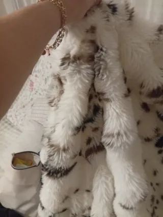 Manta suave y cálida con un diseño de manchas. - Material: pelo sintético. - Color: blanco con manchas marrones. - Tacto muy agradable.