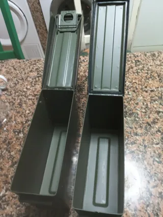 Se venden dos cajas de metal de color verde. Son ideales para almacenamiento. - Material: Metal - Color: Verde