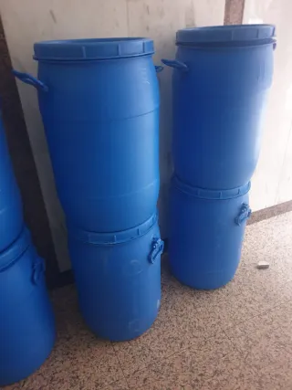 Se venden dos bidones de plástico de color azul. - Capacidad: 60 litros cada uno. - Material: Plástico resistente. - Color: Azul.