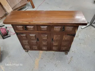Cómoda de madera con un diseño clásico, ideal para proyectos de restauración. Sus vetas de madera le dan un carácter único. - Tres cajones amplios. - Tiradores redondos. - Cerraduras en los cajones.