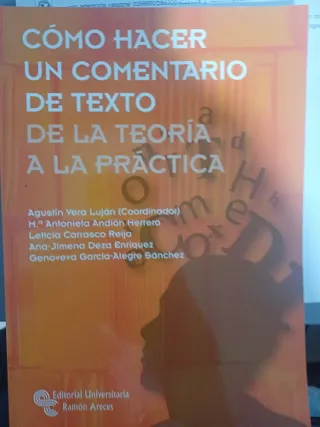 Libro Cómo Hacer un Comentario de Texto: De la Teoría a la Práctica. - Coordinado por Agustín Vera Luján. - Autores: M.ª Antonieta Andión Herrero, Leticia Carrasco Reija, Ana-Jimena Deza Enríquez, Genoveva García-Alegre Sánchez. - Editorial Universitaria Ramón Areces.